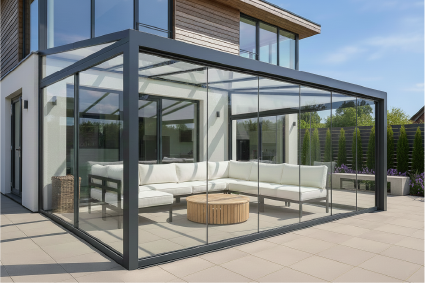 Our aluminium glass verandas are designed to complement your home beautifully, with full flexibility to suit your style, size, and colour preferences. Every detail can be tailored to your exact specifications for a truly bespoke outdoor space.