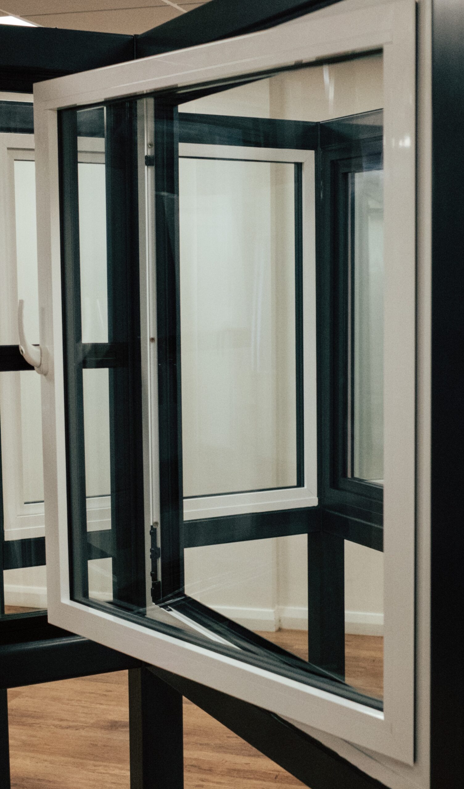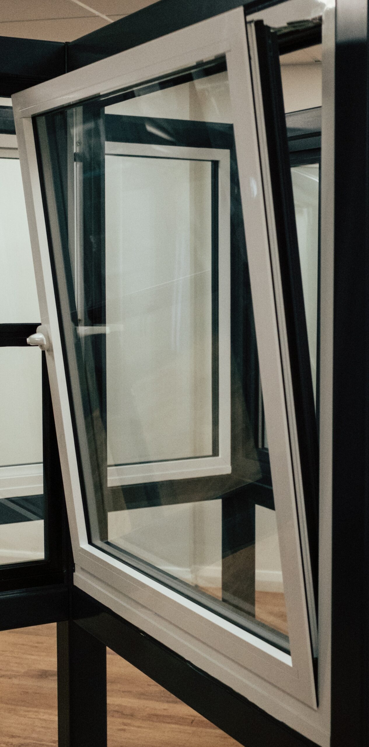 Aluminium tilt and turn windows can be opened in two ways. The bottom hinge allows you to pull the handle from the top, bringing the pane inwards for a smaller gap.